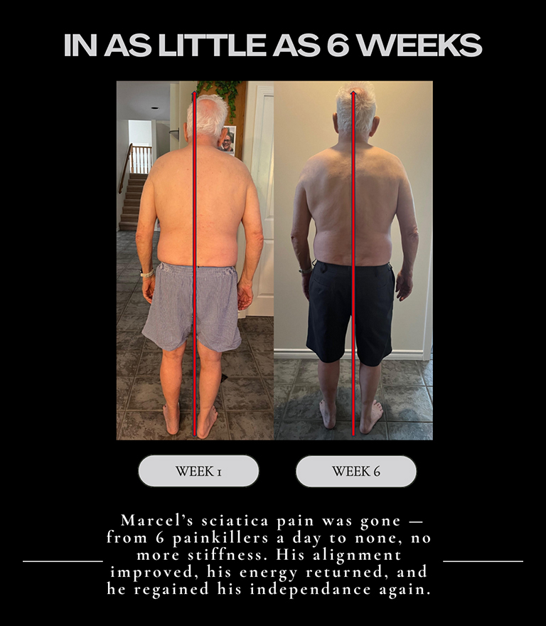 The Chronic Pain Program is designed to help you restore strength, mobility, and comfort. Through guided exercises, posture assessment fitness coaching, and mobility work, this program helps you reduce pain, improve movement, and regain confidence in your body. Each step is tailored to your body and your lifestyle so you can reduce pain, improve function, and prevent future setbacks. With ongoing support, you will gain the tools and confidence needed to live with less pain and more freedom every day.